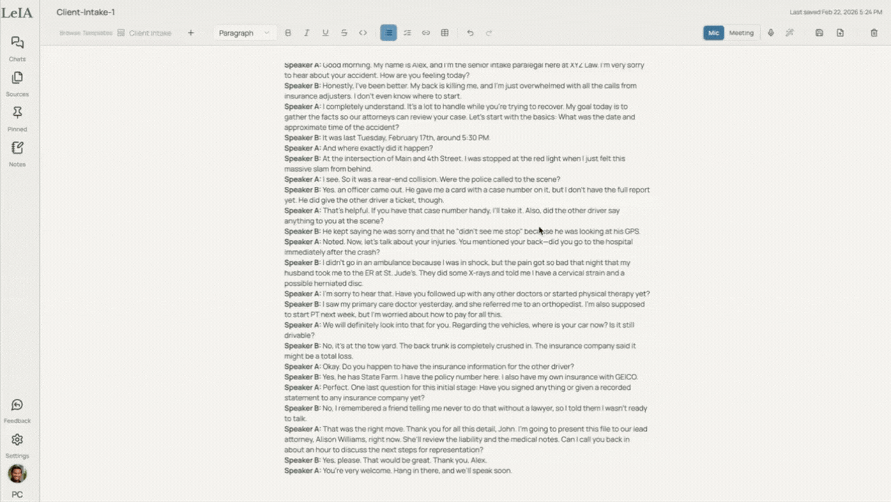 LeIA is a full-stack AI associate designed to support attorneys, paralegals, and legal teams with advanced document understanding, fast search, and process automation.